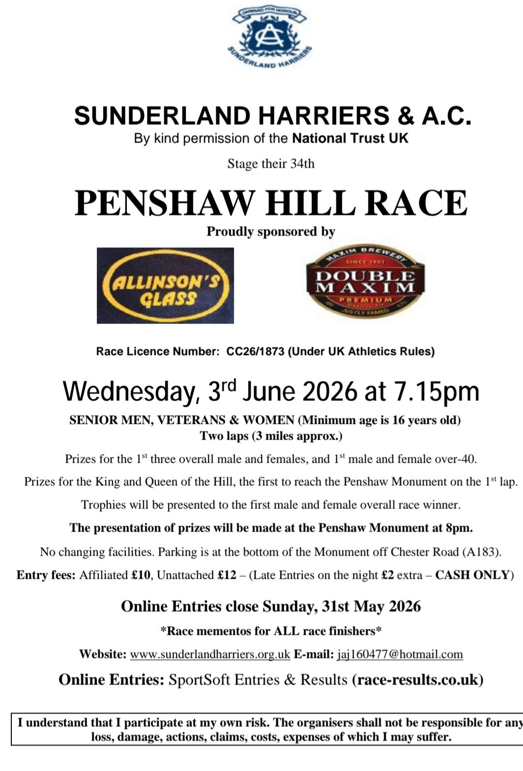 Latest postal/online entry forms for races before Jul 2026.